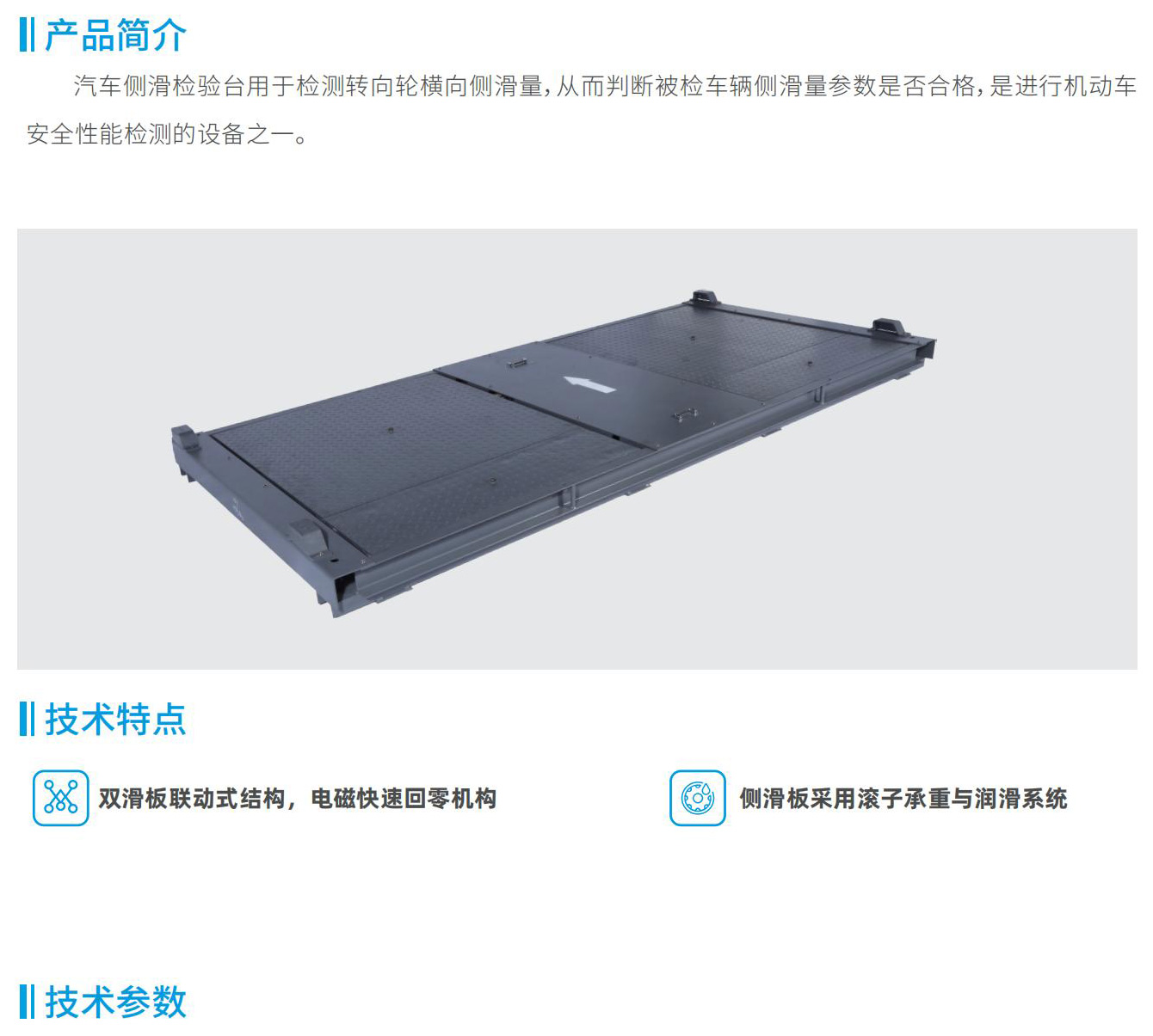 汽車側(cè)滑檢驗(yàn)臺(tái)用于檢測(cè)轉(zhuǎn)向輪橫向側(cè)滑量,從而判斷被檢車輛側(cè)滑量參數(shù)是否合格,是進(jìn)行機(jī)動(dòng)車安全性能檢測(cè)的設(shè)備之一。